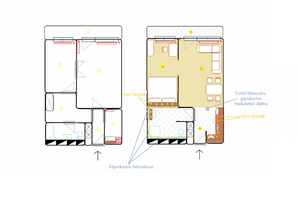 10.-ik emeleti másfél szobás lakás átalakításának tervezete